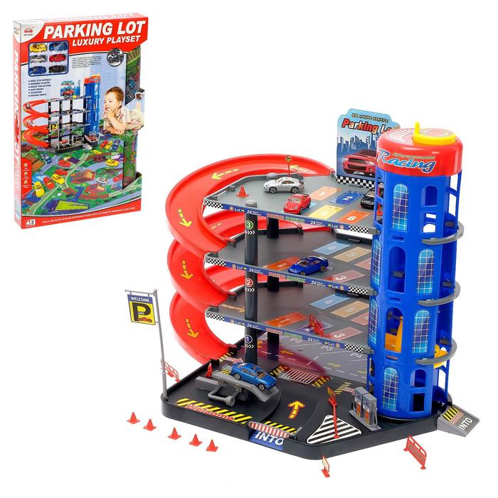 - Имеет четыре этажа, каждый вмещает до 6 машинок.