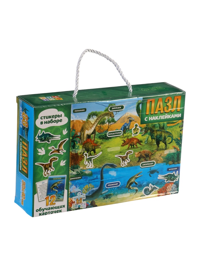 УЦЕНКА Пазл «Эпоха динозавров», с наклейками, 12 карточек, 88 деталей