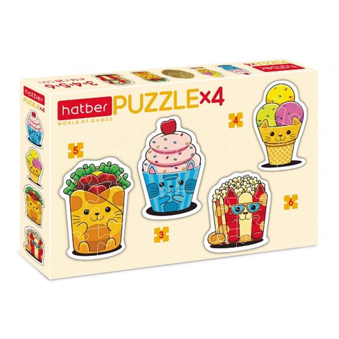 УЦЕНКА Пазл фигурный «Котоеда», 4 картинки в 1 коробке, 3,4,5,6 деталей