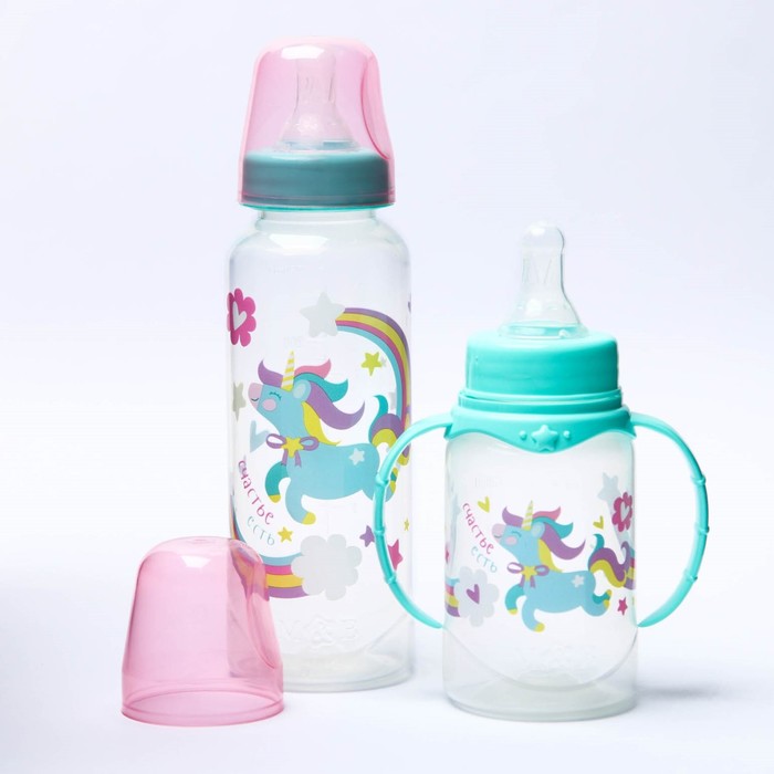 УЦЕНКА Подарочный детский набор «Волшебная пони»: бутылочки для кормления 150 и 250 мл, прямые, от 0 мес., цвет розовый