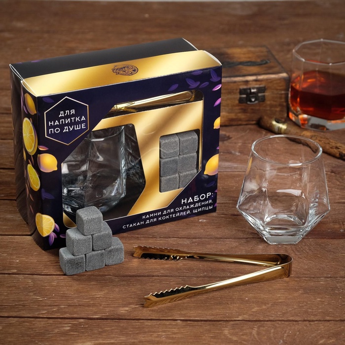 УЦЕНКА Подарочный набор "Для напитков по душе", бокал, щипцы, камни для охлаждения