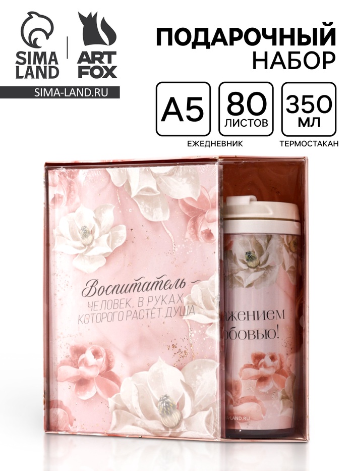 УЦЕНКА Подарочный набор ежедневник и термостакан «Воспитатель - человек, в руках которого растет душ