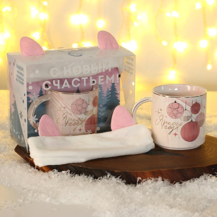 )Новогодний подарочный набор «Яркого года» — тёплый и практичный дуэт из кружки и повязки, упакованный в праздничную коробку. Подходит для девочки или женщины, объединяя уют посуды и мягкость текстиля в одном решении.