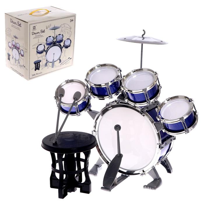 УЦЕНКА (Помята упаковка) Барабанная установка «Басист», 5 барабанов, тарелка, палочки, педаль, стул, МИКС