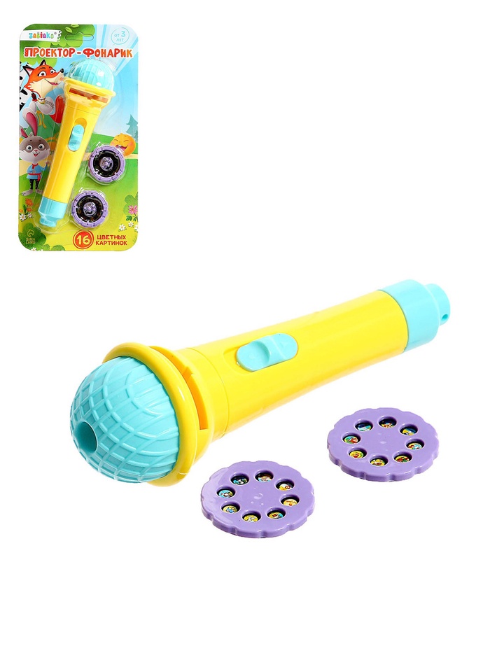 В набор входит проектор-фонарик и 3 слайда (24 цветные картинки).