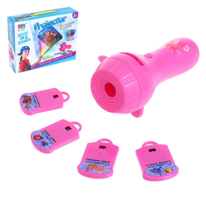 Проектор «Юный исследователь» со слайдами и подсветкой — увлекательная игрушка для познавательных игр и вечерних сказок! С его помощью ребёнок сможет рассматривать изображения животных, насекомых, динозавров и морских обитателей, превращая стену или потолок в настоящий мини-кинотеатр.