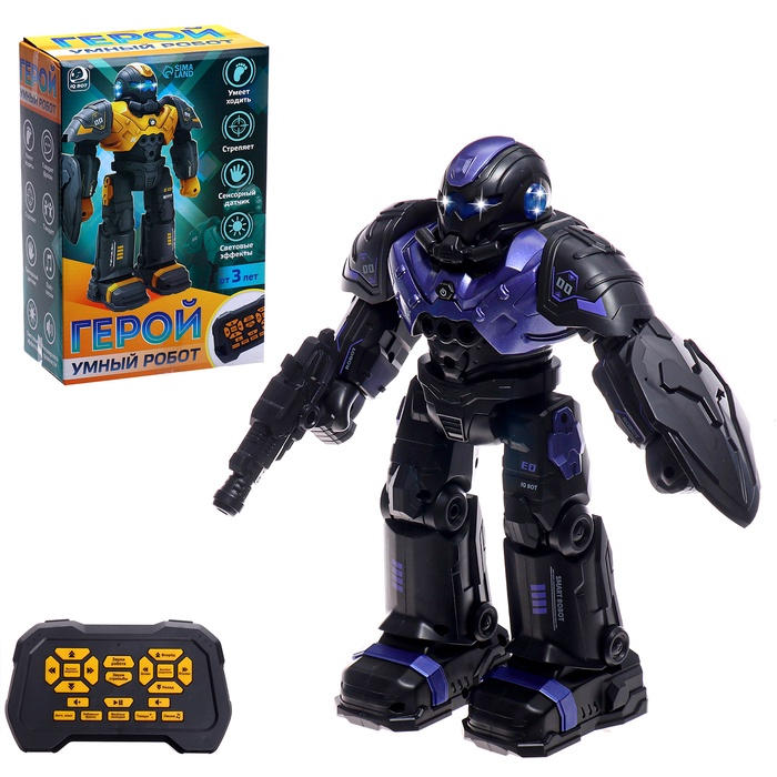)Радиоуправляемый робот «Герой» — прекрасный подарок для детей. Бесстрашный космический житель не дремлет и всегда настороже! Доблестный и отважный воин не упустит ни одного врага и всегда защитит жителей волшебной планеты от зла. Он наделён невероятной силой, а ещё ловко управляется с оружием. Неуловимый храбрец удивит своими талантами и станет преданным другом для малыша.