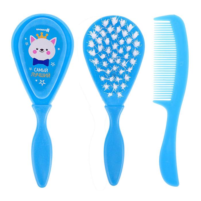 УЦЕНКА Расчёска детская + массажная щётка для волос «Самый лучший», от 0 мес., голубая