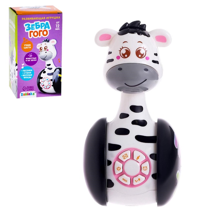 )Музыкальная неваляшка «Зебра Гого» — яркая развивающая игрушка для малышей от 1 года. Она сочетает весёлые мелодии, световые эффекты и устойчивую форму, помогая ребёнку познавать мир через игру.