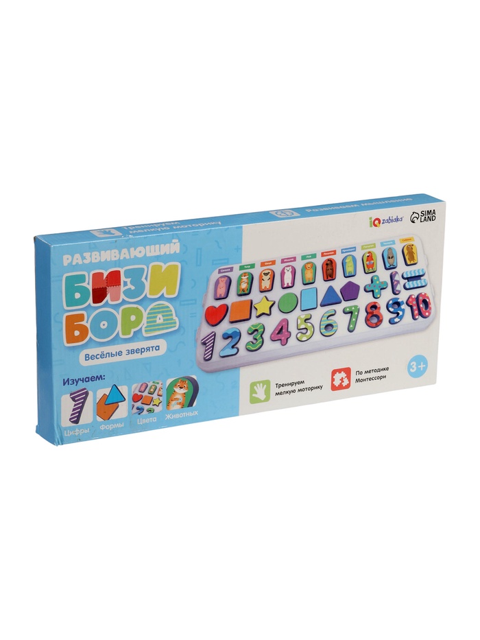 )Развивающий бизиборд «Весёлые зверята» — это многофункциональная доска, с помощью которой ребёнок познакомится с цифрами и основами счёта, повторит названия цветов и животных, выучит названия геометрических фигур и научится их различать.
