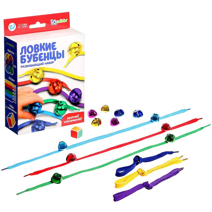 В наборе вы найдёте яркие разноцветные бубенцы и шнурки, которые превратят обучение ребёнка в весёлую и увлекательную игру. С их помощью будущий гений сможет изучать цвета, развивать реакцию, моторику и ловкость.