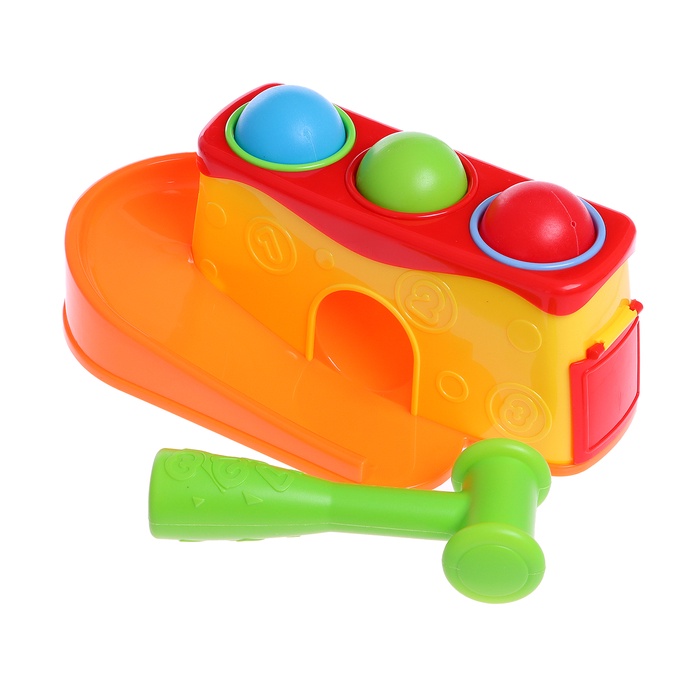 - В комплекте горка, 3 шарика и молоточек.
