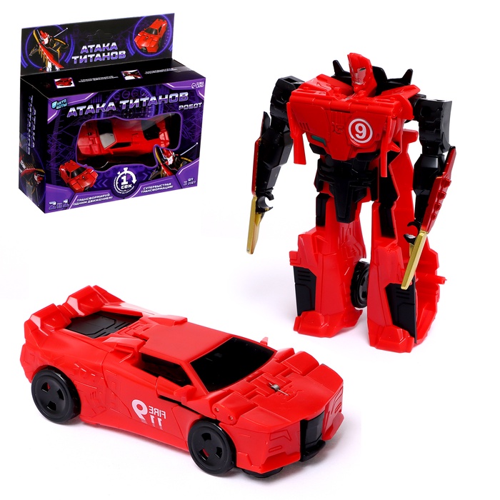- Мгновенная трансформация — спорткар (10,3 см) ↔ робот (11 см).