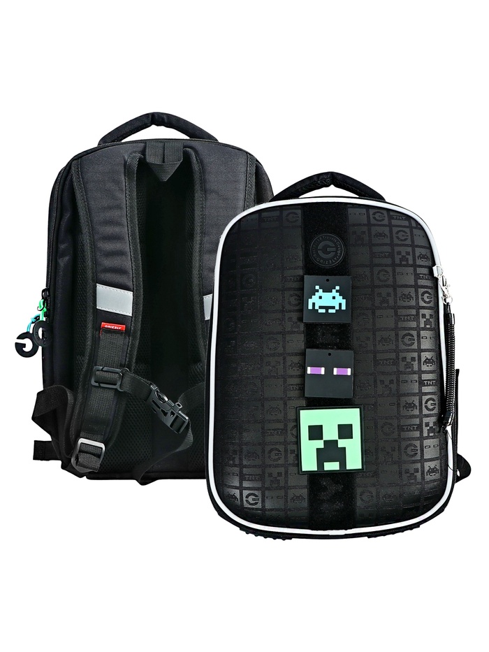 - Рисунок с изображением Майнкрафт: яркий дизайн делает модель привлекательной для детей, стимулирует интерес к учебе и активному использованию рюкзака.