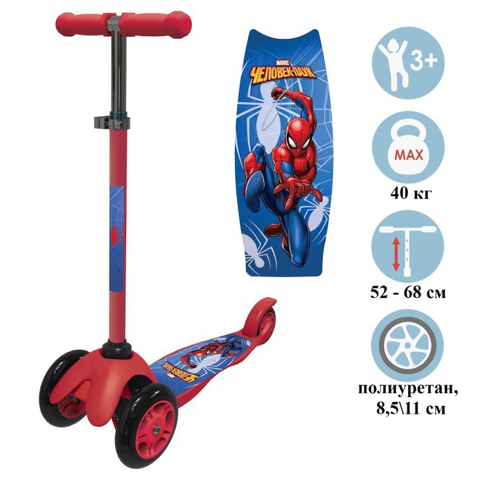 УЦЕНКА Самокат детский складной «Человек-Паук», колеса PU 120/80 мм, ABEC 7, красный