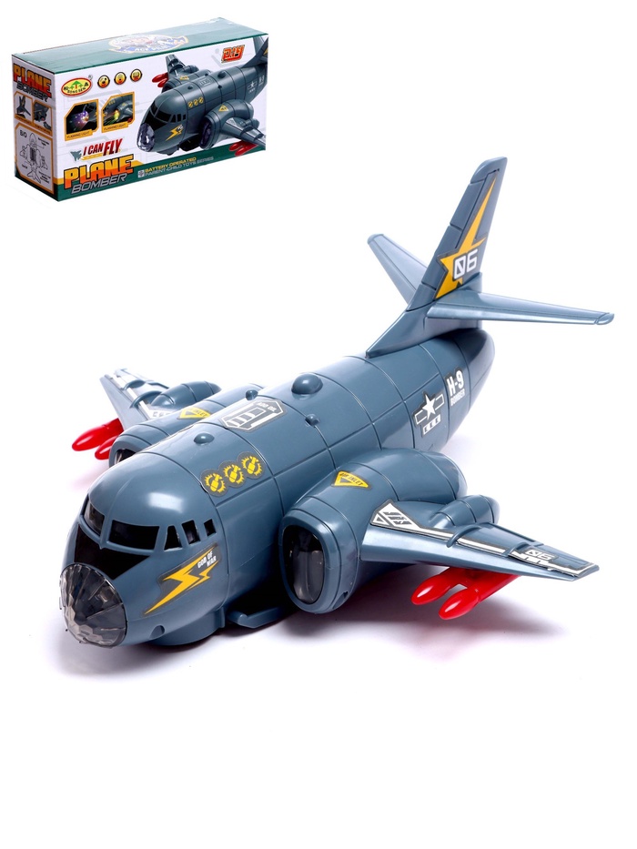 УЦЕНКА Самолёт «Транспортный», работает от батареек, световые и звуковые эффекты, серый