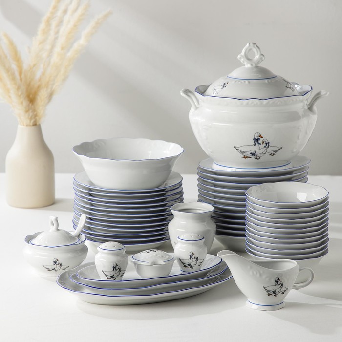 УЦЕНКА Сервиз фарфоровый столовый «Надежда. Гуси», 46 предметов, нет ложки и солонки