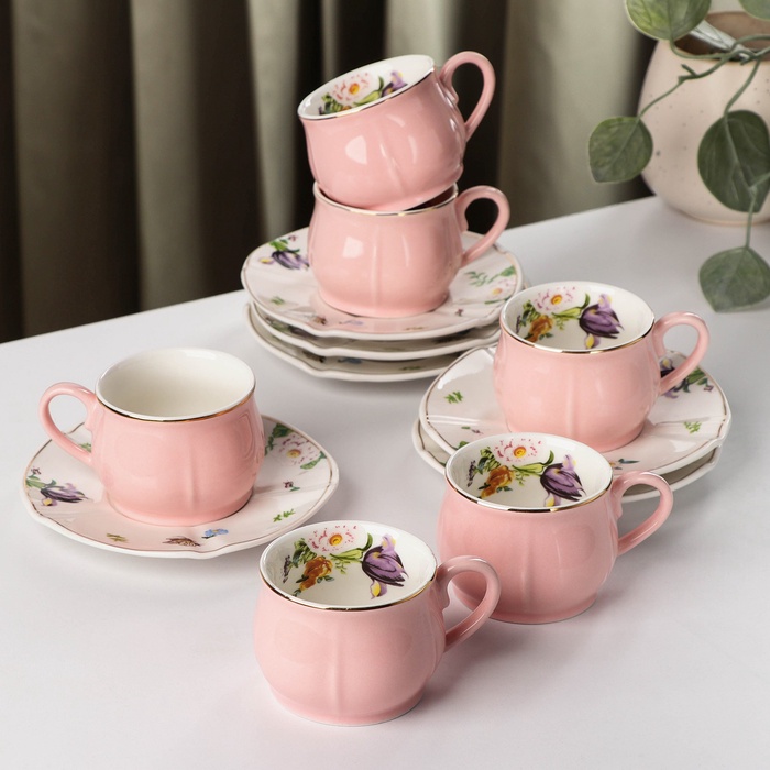 УЦЕНКА Сервиз кофейный «Сирена», 12 предметов: 6 чашек 100 мл, 6 блюдец d=12 см, розовая