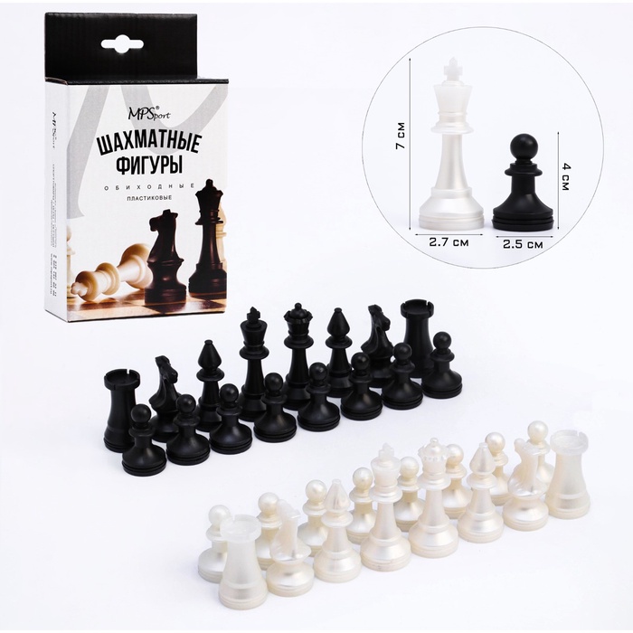 УЦЕНКА Шахматные фигуры обиходные, пластик, король h=7 см, d=2.7 см, пешка h=4 см, d=2.5 см