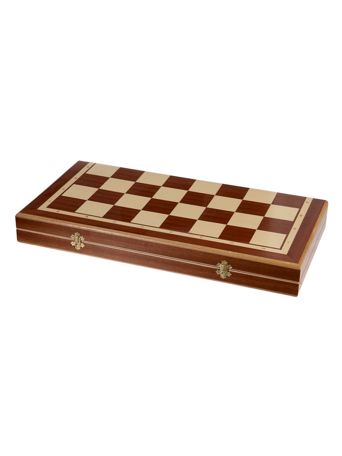 На внутренней части складной доски имеется специальный лоток с ячейками для удобного и безопасного хранения фигур.