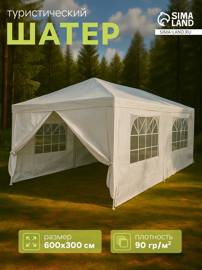 УЦЕНКА Шатёр туристический, 600×300 см, закрытый, белый