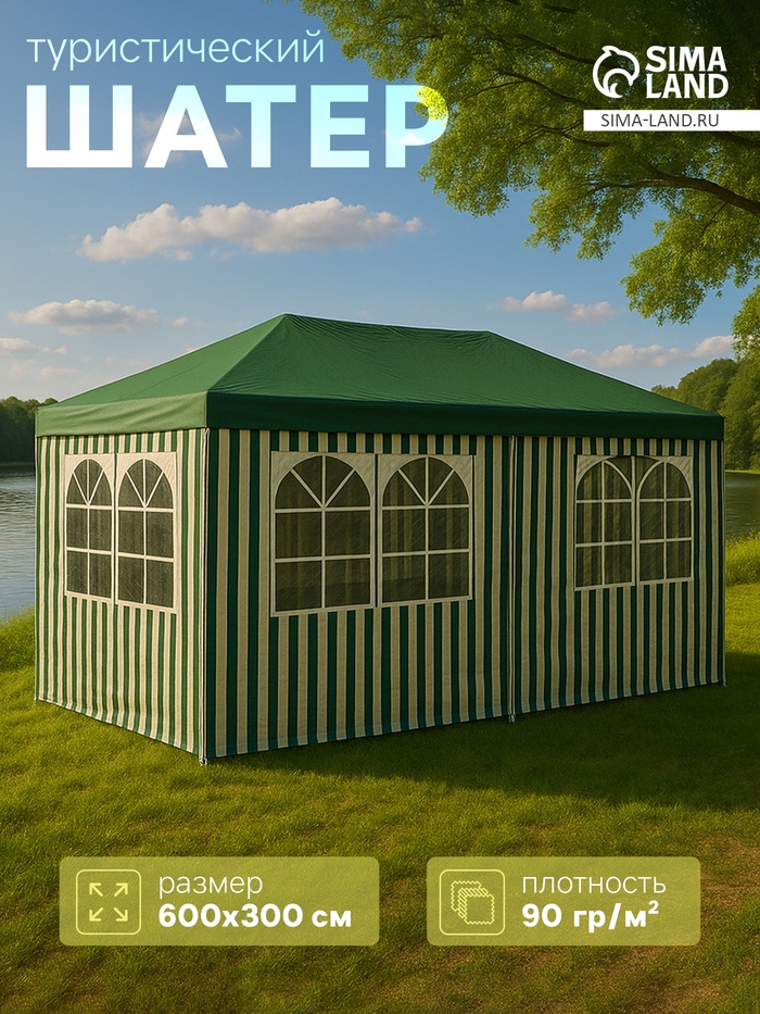Просторный туристический шатёр размером 600×300 см с высотой 260 см – идеальное решение для комфортного отдыха на природе. Прочный металлический каркас с трубами диаметром 24 и 18 мм обеспечивает устойчивость, а тент из полиэстера плотностью 90 г/м² надёжно защищает от ветра и осадков. Закрытая конструкция с окнами и дополнительной стенкой создаёт уютное пространство, а зелёный цвет гармонично сочетается с природным окружением.