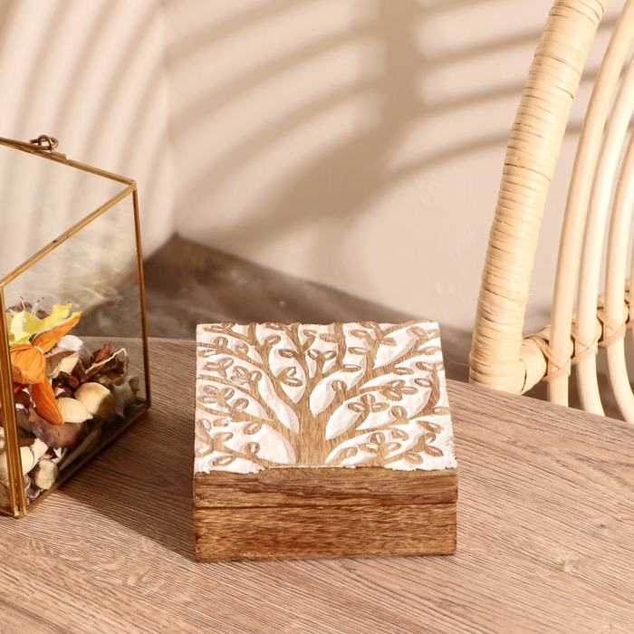 УЦЕНКА Шкатулка «Цветущее дерево» дерево 14×14×6 см