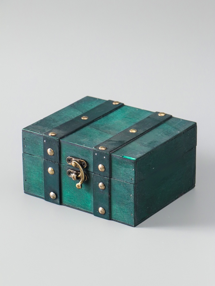 УЦЕНКА Шкатулка дерево сундучок «Алиенора» с заклёпками, плоская, зелёный 15×11.5×7.5 см