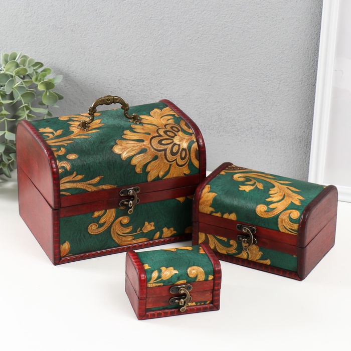 Прекрасным подарком любой женщине станет УЦЕНКА Шкатулка дерево сундучок (набор 3 шт.) «Искусство» 19.5×14.5×12 см,15×10.5×9 см,10×6×7 см. Это лёгкий и стильный элемент интерьера, который сохранит памятные сердцу вещи.