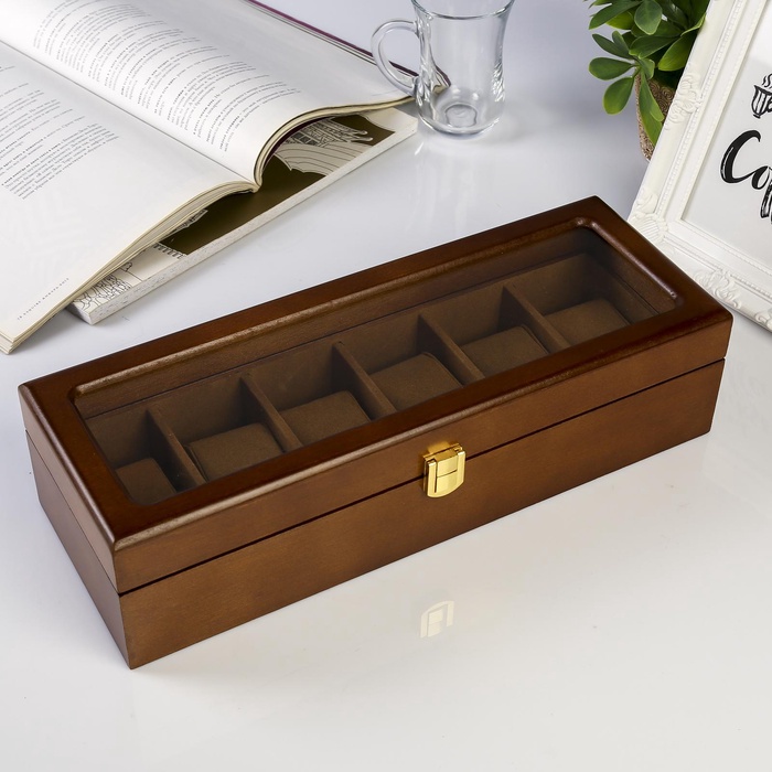 УЦЕНКА Шкатулка для часов 6 отделений «Стиль», дерево, коричневая, 12.7×8×33 см