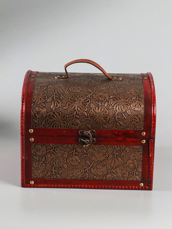 УЦЕНКА Шкатулка для украшений дерево состаренная «Сундук. Золотые цветы на чёрном», 23×30×24 см