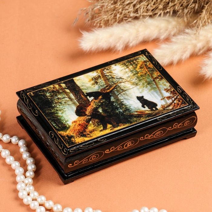 УЦЕНКА Шкатулка «Мишки в лесу», 10×14 см, лаковая миниатюра