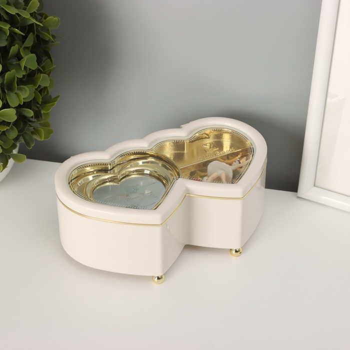 УЦЕНКА Шкатулка музыкальная пластик механическая «Двойное сердце белое», 6×16×10 см