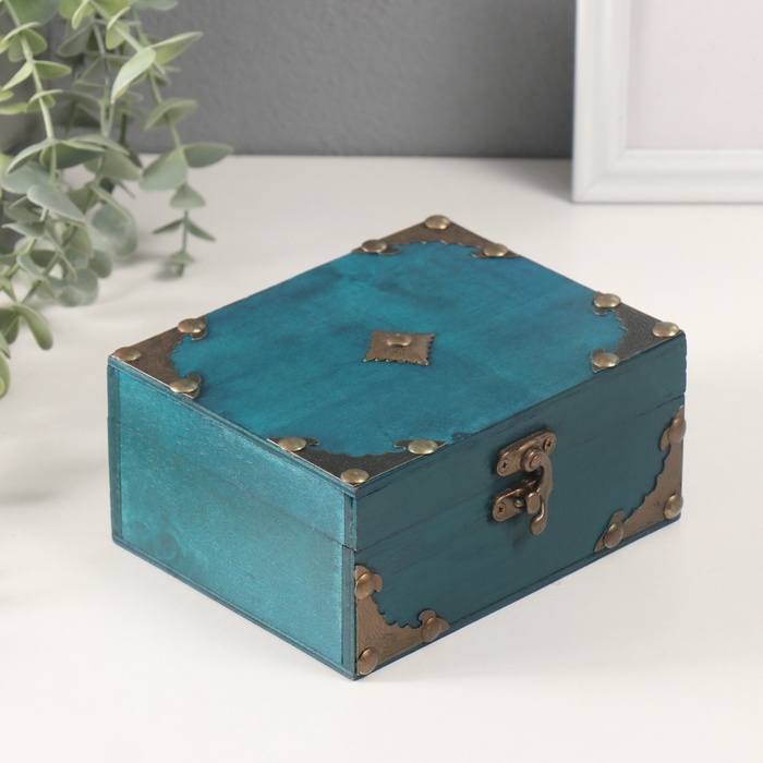 УЦЕНКА Шкатулка сундук дерево "Адриана" голубая 15х12х7 см
