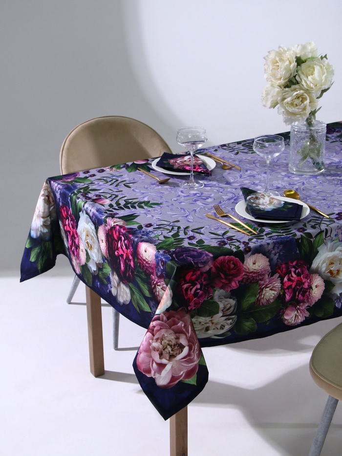 Эта скатерть не требует идеальной сервировки — она сама задаёт тон. Фиолетовый добавляет глубины, а растительный узор смягчает обстановку, делая её теплее. Уход прост: стирка при 40 °C, бережная глажка, без отбеливателей — и ткань сохраняет цвет и структуру. Подходит для всех времён года и легко сочетается с фарфором, деревом и стеклом. ”Цветочный этюд“ — для тех, кто верит: хороший ужин начинается с деталей, а не с блюд.