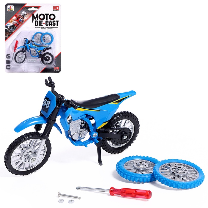 Уценка (скол на руле) Мотоцикл «Эндуро», металлический, со сменными колёсами, 1:18, МИКС