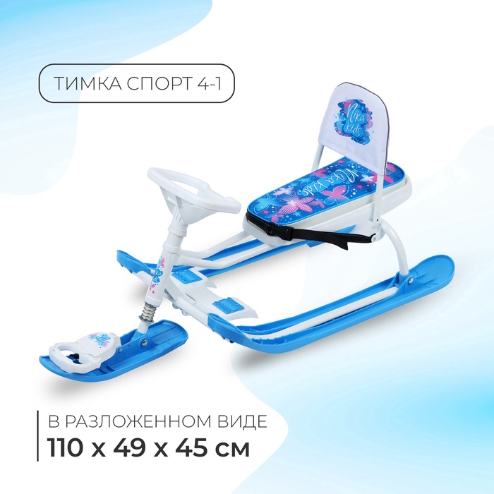 УЦЕНКА Снегокат «Тимка спорт 4-1» с бабочками, со спинкой, белый, голубой, ТС4-1/БТ Nika