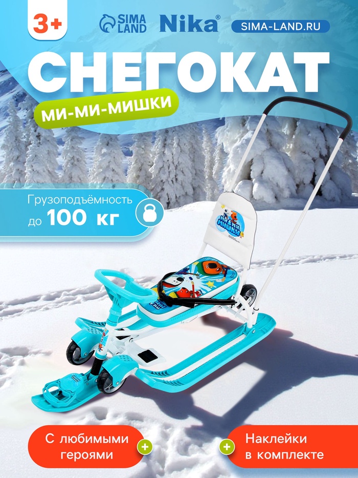 УЦЕНКА Снегокат «Тимка спорт 6» Ми-ми-мишки, со спинкой, с родительской ручкой, бирюзовый, ТС6/ММ1 Nika Kids