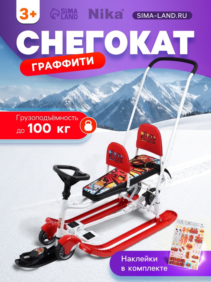УЦЕНКА Снегокат «Тимка спорт 6Д» с граффити, с двумя спинками, с родительской ручкой, красный, чёрный, ТС6Д/GR Nika
