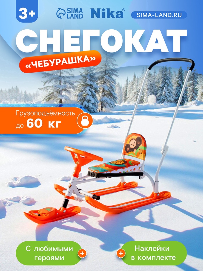 УЦЕНКА Снегокат «Twiny 2» Чебурашка, со спинкой, с родительской ручкой, оранжевый, TW2/ЧБ1 Nika