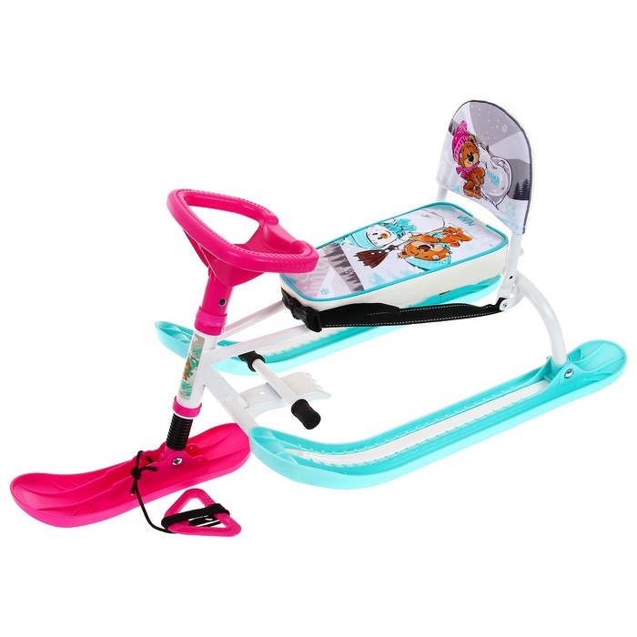 УЦЕНКА Снегокат «Twiny1+» с забавными медвежатами, со спинкой, голубой, розовый, TW1+/ЗМ Nika Kids