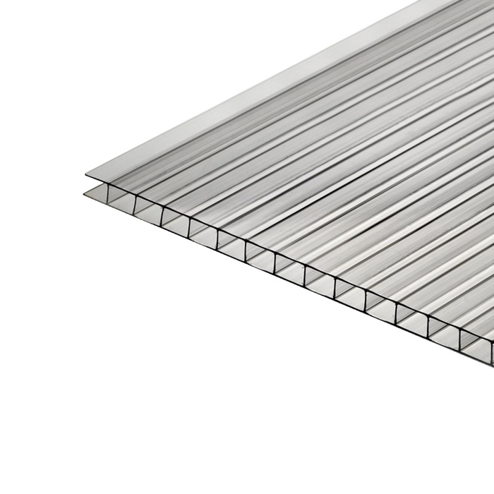 УЦЕНКА Сотовый поликарбонат 4 мм, 2.1×6 м, УФ- защита, 0.42 кг/м², прозрачный