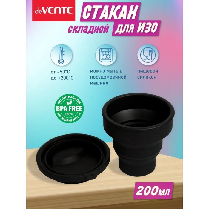 )Стакан для ИЗО "deVENTE. School" силиконовый, складной, в собранном виде 80x90x80 мм, в сложенном 80x10x80 мм, с силиконовой крышкой, черный.