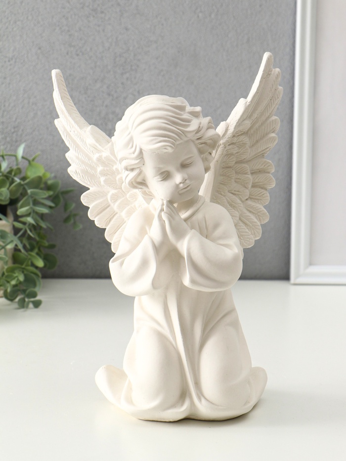)Эта сидячая фигура ангела из гипса создаёт в доме атмосферу покоя и нежности. Её классический белый цвет и сдержанная поза наполняют пространство светом и тихой радостью, делая образ универсальным украшением для любого времени года.