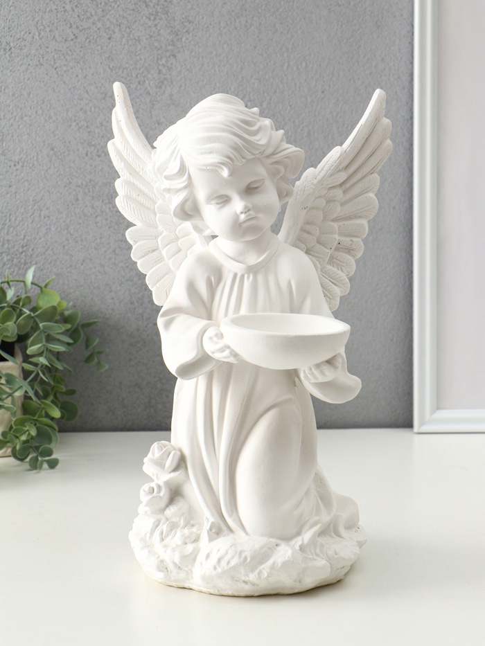 Эта гипсовая скульптура ангела создаёт в доме атмосферу чистоты и светлой радости. Изящная фигурка с чашей в руках станет выразительным акцентом в интерьере, наполняя пространство ощущением уюта и гармонии.