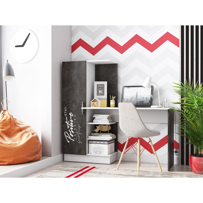 Стильное и функциональное решение для организации рабочего пространства. Стол выполнен в современном дизайне, сочетающем белоснежный верх и бетонный низ, что придает ему уникальный и модный вид.