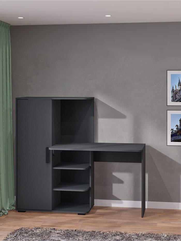 Стильное и функциональное решение для организации рабочего пространства. Стол выполнен в современном дизайне в оттенке серый графит, что придает ему элегантный и модный вид. Подходит для домашнего офиса, студенческой комнаты или любого другого пространства, где вам требуется функциональное рабочее место.