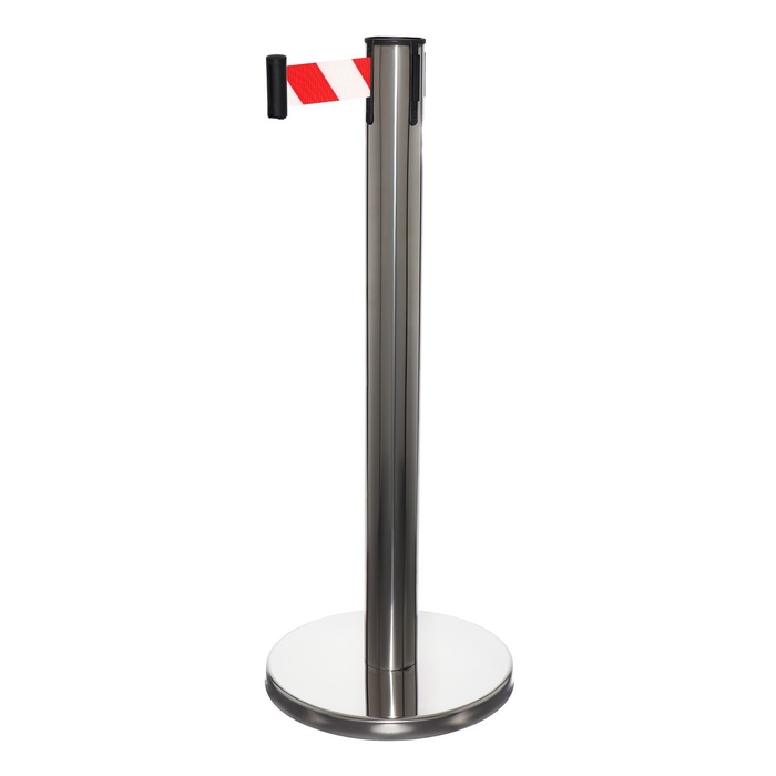 УЦЕНКА Стойка ограждения сер с вытяжной лентой-280 см КРАСН-БЕЛ, высота-90 см, d=6 см, напольный d=32 см