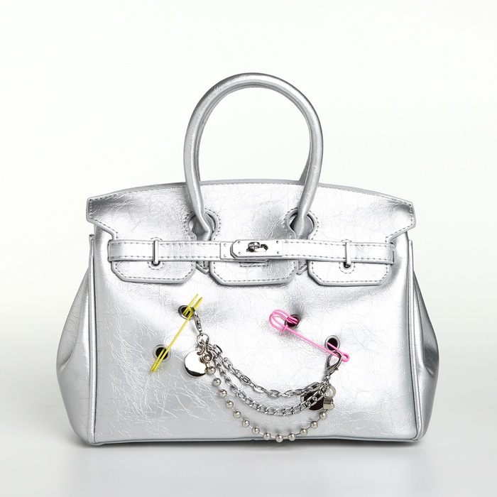УЦЕНКА Сумка женская 24×14×19, отд на клапане, длин ремень, серебро
