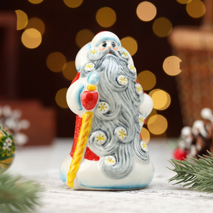 УЦЕНКА Сувенир «Дед Мороз Снеговей», красная шуба, 10 см, фарфор